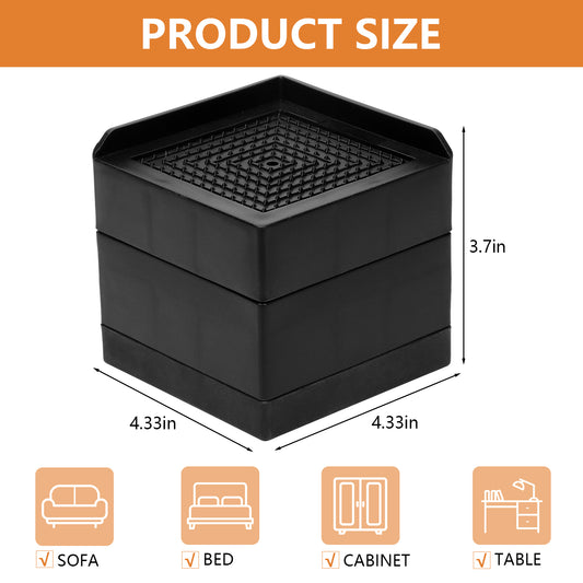 LIZEVINC Bed Risers 4 Pack, Adjustable Furniture Lifts for Under Bed Storage, Non-Slip Supports for Sofa, Table, Desk, Couch and Appliances