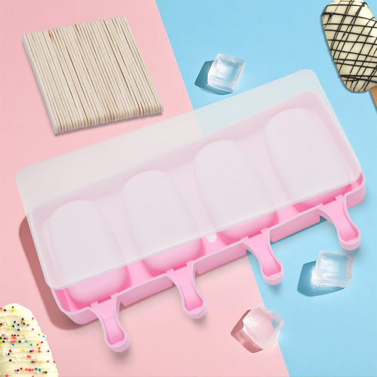 LIZEVINC Silicone Popsicle Molds with 50 Sticks – Reusable Ice & Cake Pop Maker for DIY Desserts (Pink)