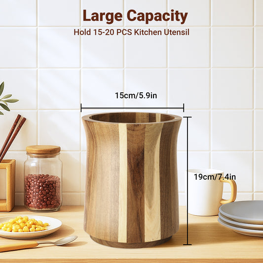 LIZEVINC Wooden Utensil Holder, 360° Rotating Kitchen Utensil Holder, 7.3'' Extra Large Utensil Crock, Farmhouse Kitchens