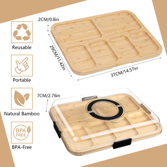 Portable Charcuterie Box with Clear Lid, 6-Compartment Cheese Board & Travel Platter for Picnics, Weddings, Housewarming Gifts (Black)