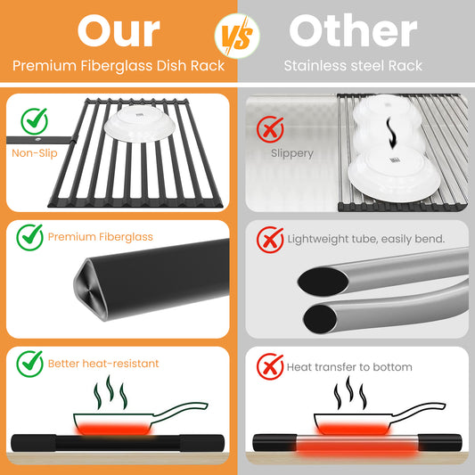 LIZEVINC Roll Up Dish Drying Rack, 20.08"x12.6" Fiberglass Over The Sink Dish Drainer Rack, Foldable Sink Drying Rack, Anti-Slip & Anti-Rust Dish Rack for Kitchen, Black