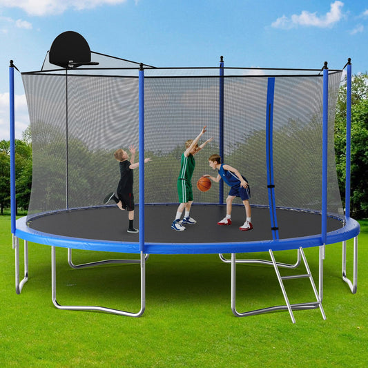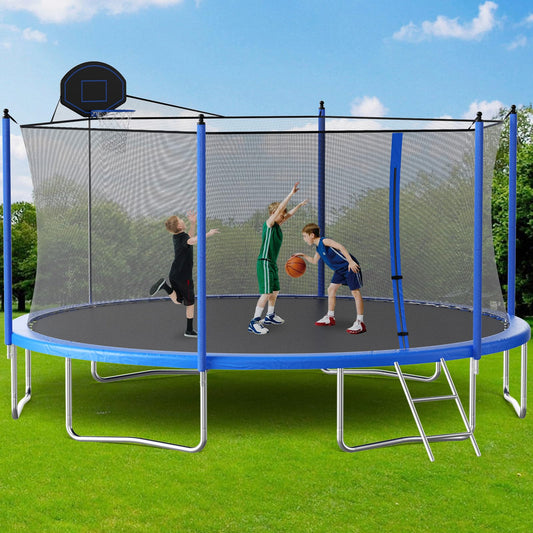 LIZEVINC Trampoline Outdoor 16FT with Basketball Hoop and Ladder, Safety Enclosure, Leisure Trampoline for Kids and Adults, Rust-Resistant Coated Frame
