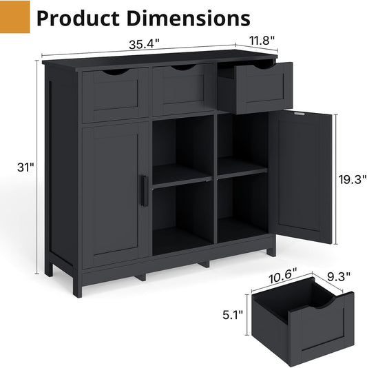 LIZEVINC Storage Cabinets, Wooden Floor Cabinet, with Drawers and Shelves Storage Cabinets, Accent Cabinet for Living Room, Bedroom,Bathroom Furniture Home Decor