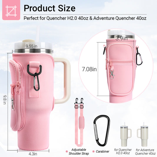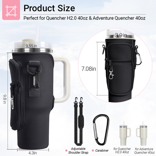 ZIVACATE Water Bottle Carrier Bag with Phone Pocket, Adjustable Crossbody Strap for 40 oz Tumbler and Cup Accessories