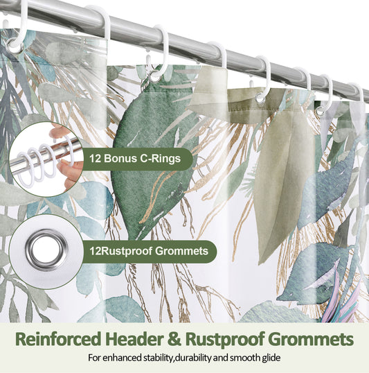 ZIVACATE Shower Curtain with Hooks-Watercolor Plant Leaves Floral Shower Curtain–Heavy-Duty Mold/Mildew-Resistant,Water-Repellent,72 x 72