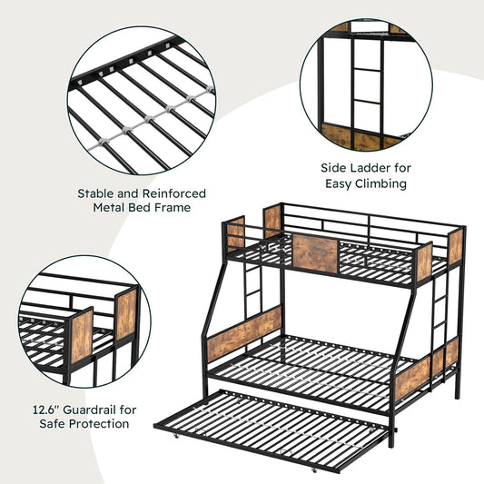 ZIVACATE Twin Over Full Bunk Bed, Metal Bunk Bed with Side Ladders, Sturdy Metal Frame Supports, Noiseless, Black & Brown