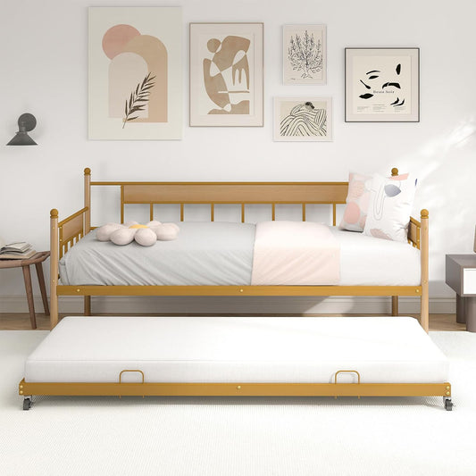 ZIVACATE Twin Metal Daybed with Roll Out Trundle - Easy Assembly,Space-Saving Design - Includes Sturdy Steel Slats-Pop up trundle bed (Gold, Twin)