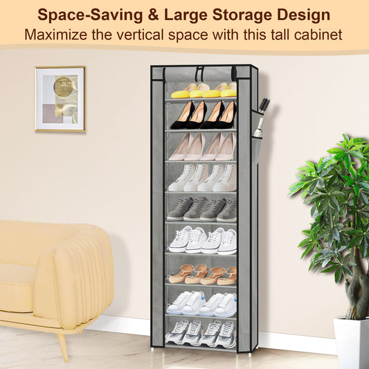 ZIVACATE Shoe Rack Organizer, 10 Tier Shoe Organizer with Nonwoven Fabric Cover, Shoe Storage Shelf for 22-30 Pairs of Shoes, Entryway, Suitable for Sneakers, High Heels, Flats, and Boots,Etc,Gray
