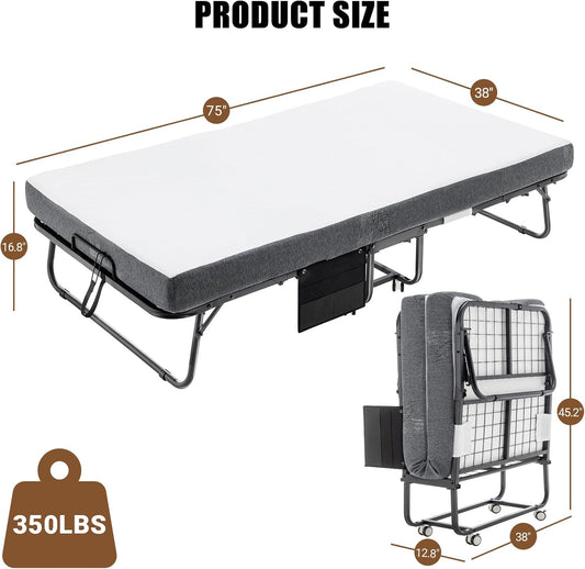 ZIVACATE Twin Size Portable Rollaway Bed with Mattress for Adults, 75" x 38" Folding Bed