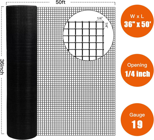 ZIVACATE 36" x 50' 1/4" Black Vinyl-Coated Hardware Cloth – PVC Galvanized Welded Mesh Roll for Garden Fencing, Chicken Coops, and Rabbit Cages
