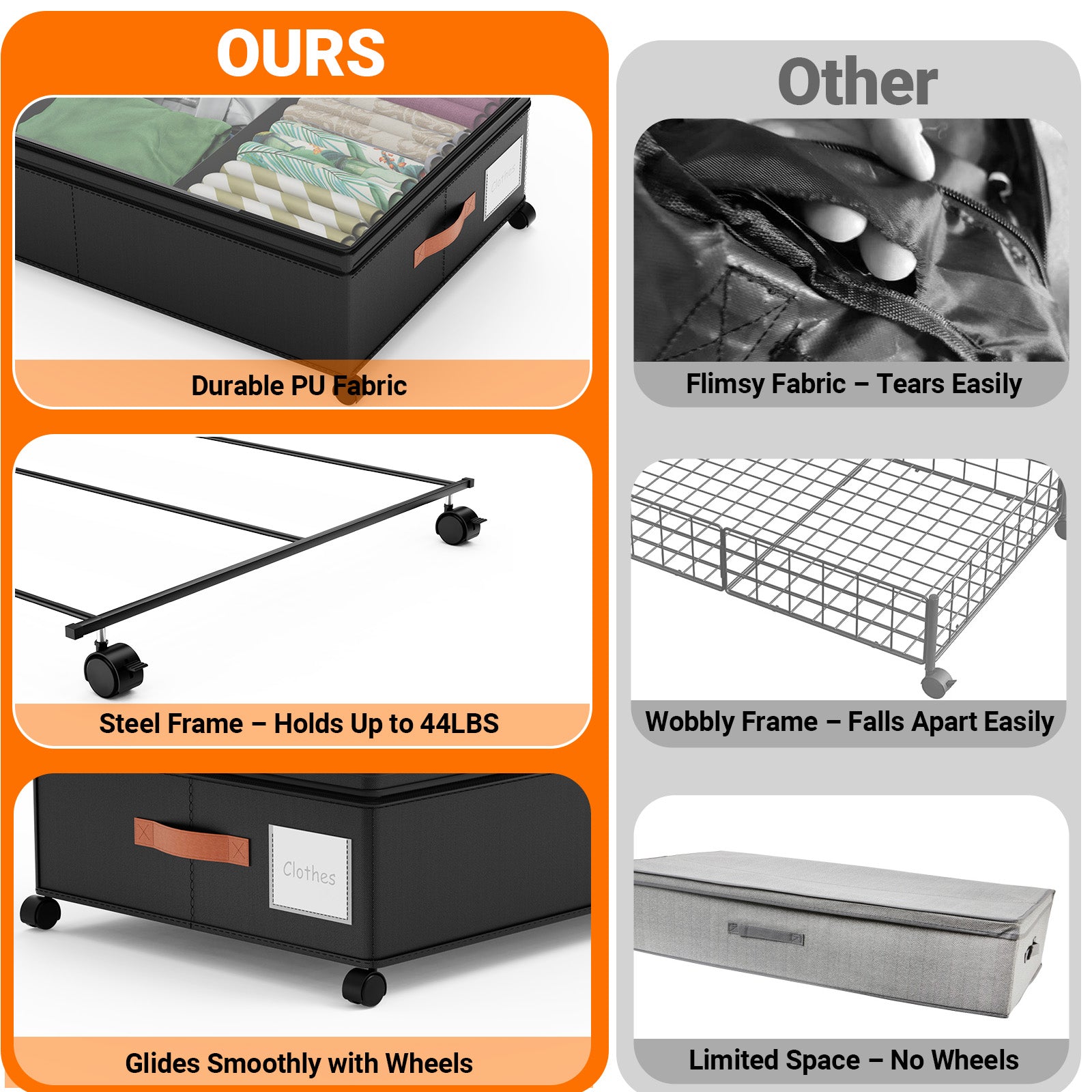 - Smooth Rolling Wheels for Effortless Access:Equipped with 360° smooth-rolling wheels, this storage box glides out easily, even from tight spaces. No more awkward lifting—just roll it out to access your belongings in seconds.